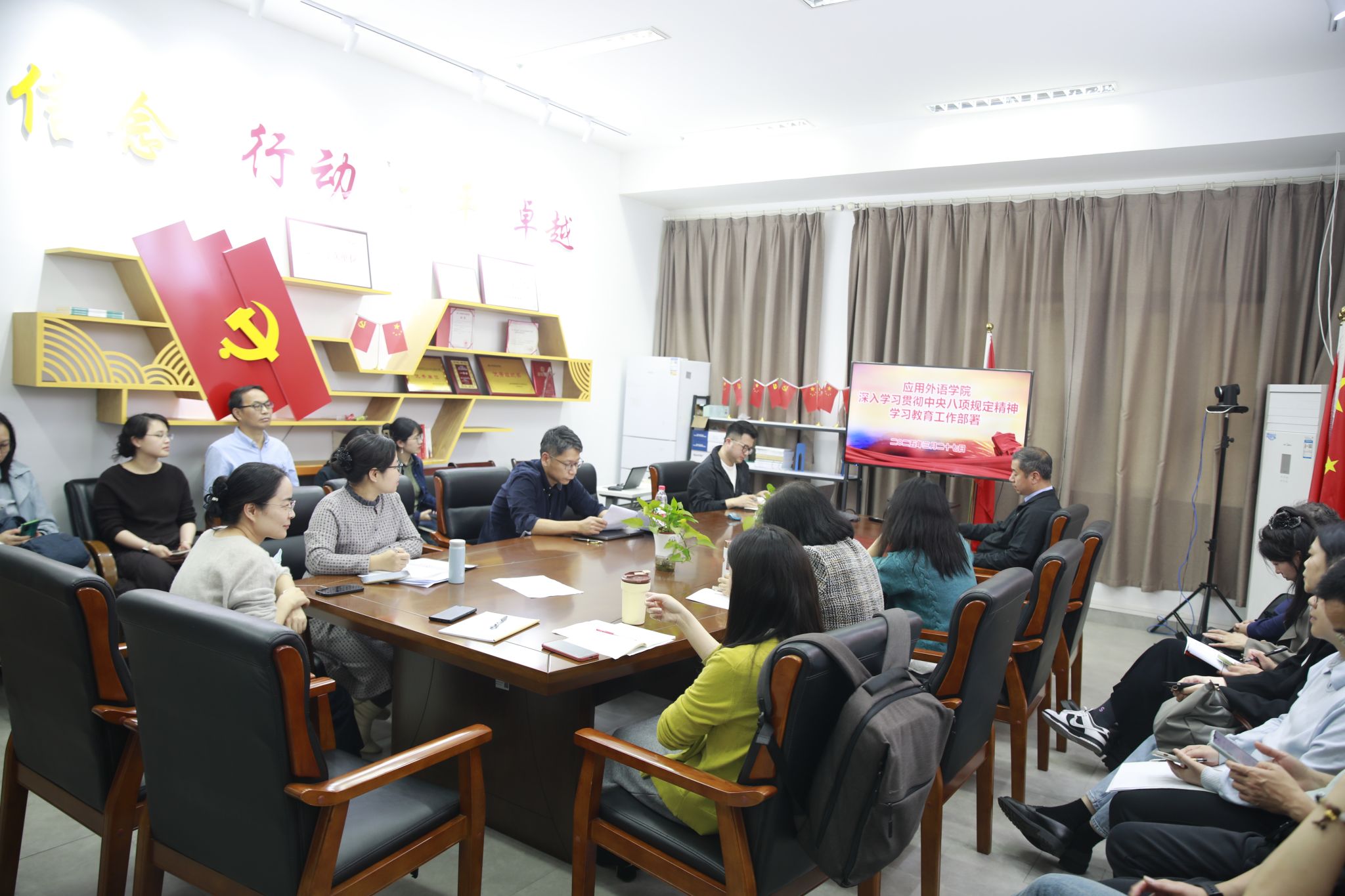 此外,王昊还强调,要以此次学习教育为契机,积极践行新时代党的群众路线,主动深入师生群体、教学一线调研,了解师生需求,解决实际问题,在推动学院教学改革、提升人才培养质量、助力学校建设“外语名校”的进程中勇担使命、积极作为。学院要认真落实各项工作任务,将加强宣传引导,营造良好学习氛围,以优良党风引领院风、促进教风、带动学风,为学院高质量发展提供坚实保障。