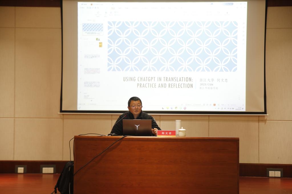 为进一步推动外语教学领域的创新与发展,学院举办了一场以“生成式人工智能时代的外语教学研究——以翻译为例”为主题的学术讲座。浙江大学外国语学院的知名学者何文忠教授应邀而来,为在座的教师同仁带来了一场别开生面的学术盛宴。